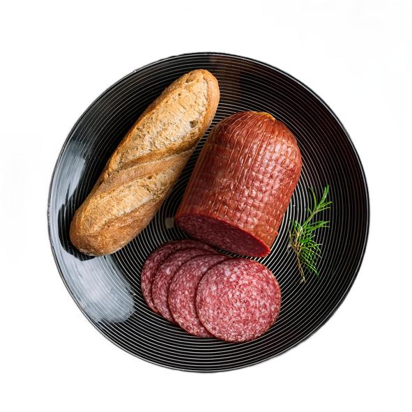 - Det frosne oksekød lynes sammen med Combinat Salami og Starterkultur Germet ned til ca. 2-4 mm.