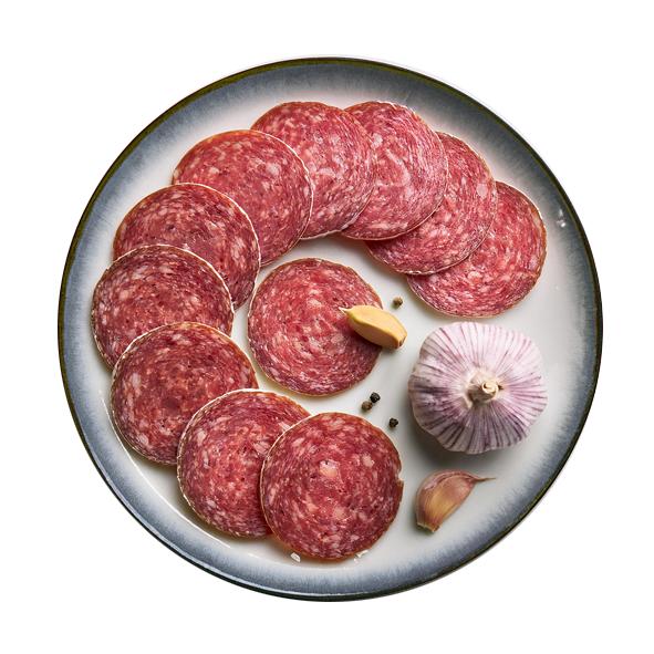 - Herefter tilsættes det skalfrosne okse og grisekød, samt krydderier og starterkultur. Der køres til den ønskede grovhed er opnået.