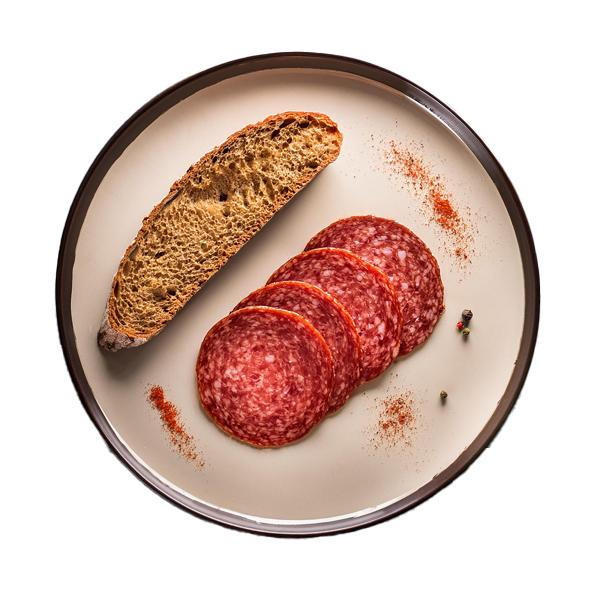 - Det frosne okse- og svinekød lynes sammen med Combinat K6, Middelhavskrydderi og Starterkultur Germet ned til ca. 2-4 mm.