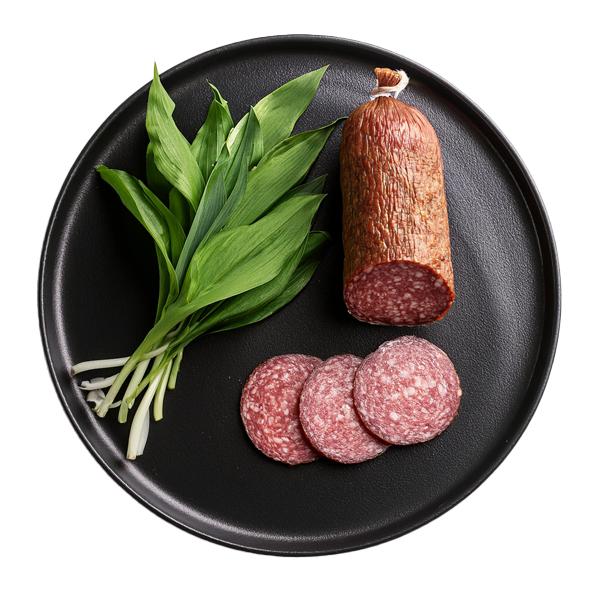Det frosne spæk iblandes og det hele lynes ned til 1-2 mm. Salt og Ramsløg tilsættes ved de sidste omgange.