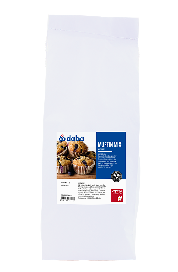 bages ved 180-190 gr C i 22-25 minutter. Små muffins bages i 17-18 minutter. 1 kg. blanding giver 30 små muffins.