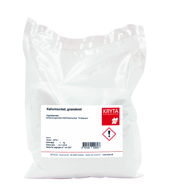 Kaliumsorbat er et godkendt konserveringsmiddel til mad. Bruges som konserveringsmiddel.