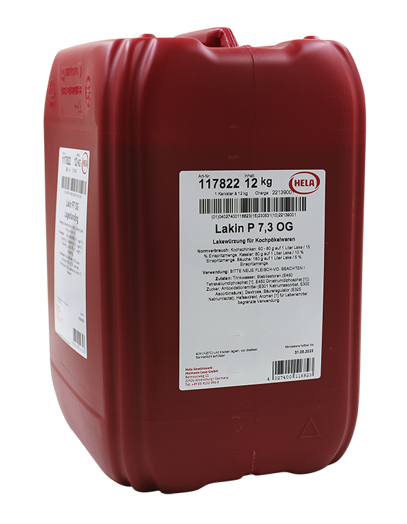Lakin P7 og Lageblanding 12 kg dunk. Kogt skinke: 60-80 g til 1 ltr lage/15% indsprøjtning.