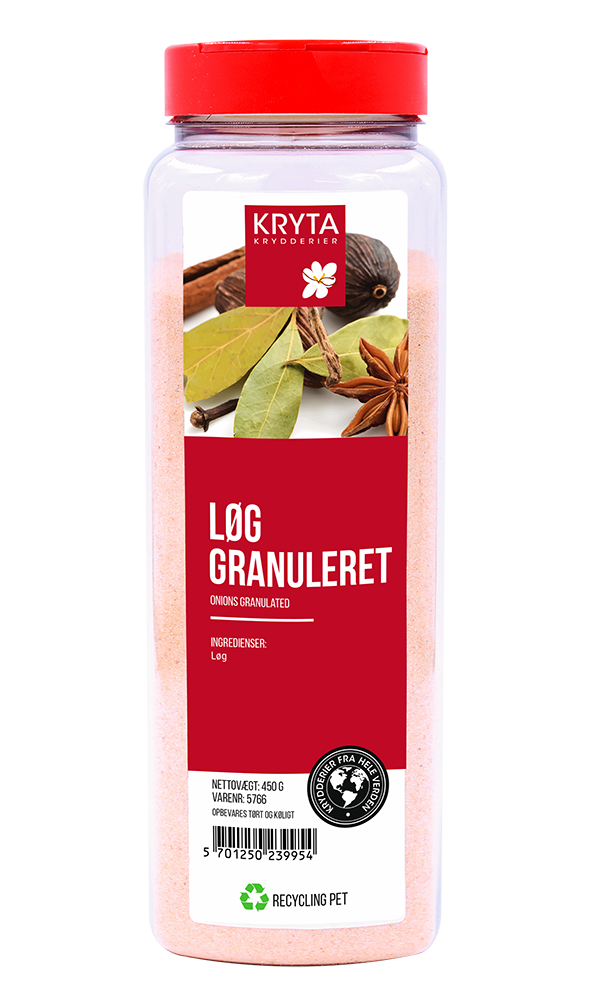 Granuleret løg er meget anvendelig og bruges som smagsforstærker i et utal af fødevarer.