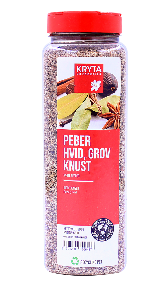 Hvid peber har en skarpere men mindre aromatisk smag i forhold til sort peber.