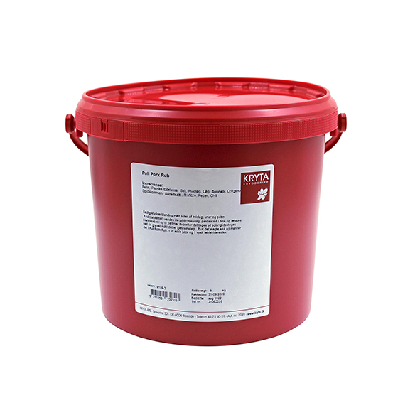 Pull rub krydderiblandingen består af bl.a. paprika, hvidløg og cayennepeber. Den er sødlig med noter af hvidløg, urter og peber.