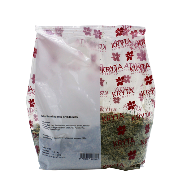 Sylteblanding med urter. Posens indhold passer til 7 kg skankekød, 4 ltr. kogende suppe og 200 g rødvinseddike.