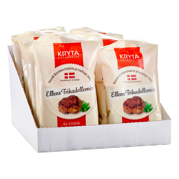 Ellens frikadellemix er en færdigblanding til klassiske frikadeller. Dansk opskrift, som er produceret siden 1974 af Kryta.