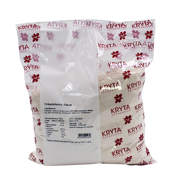 Ellens frikadellemix er en færdigblanding til klassiske frikadeller. Anvendelse:1 pose til 4,5 kg fars og 2 - 2,5 ltr. vand.
