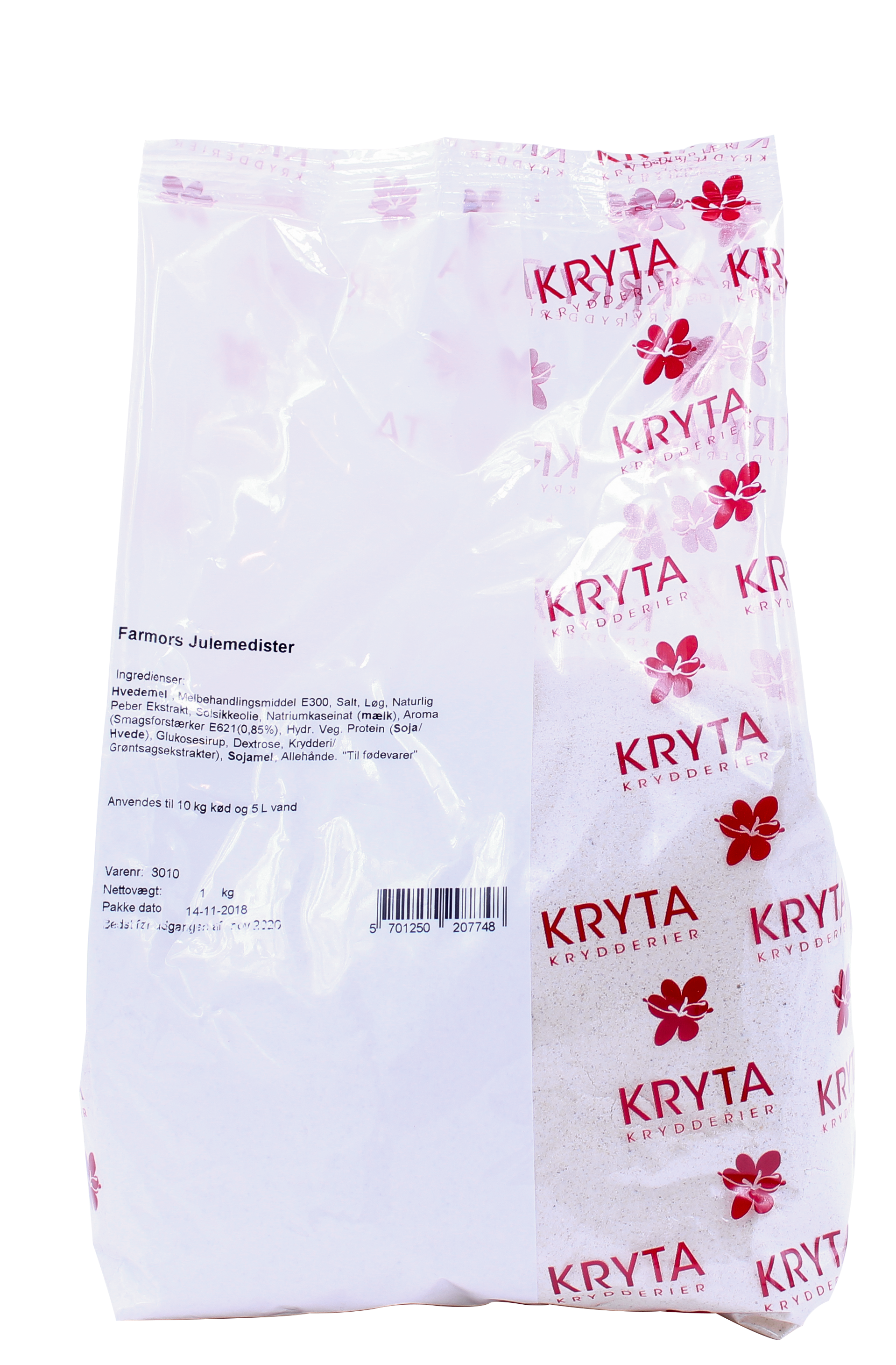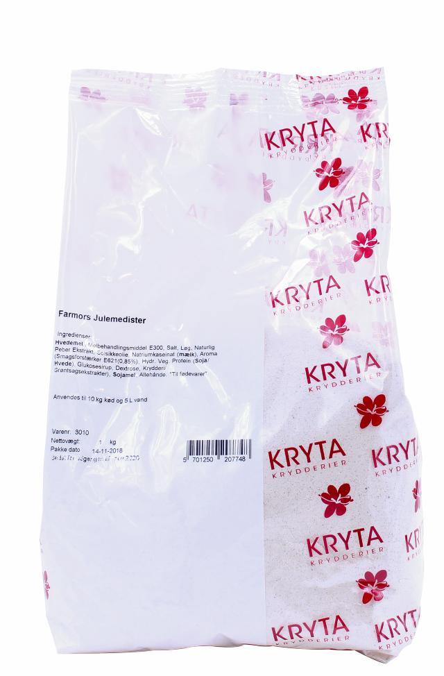 Færdigblanding til farmors julemedister, bl.a. krydret med julekrydderiet allehånde. Posens indhold passer til 10 kg kød og 5 ltr. vand.