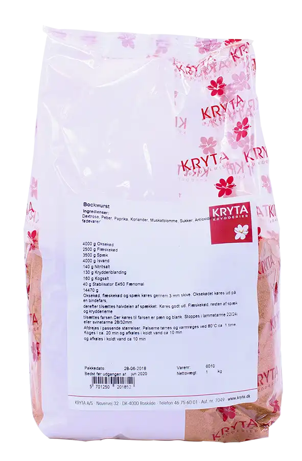 Krydderiblanding til Bockwurst, en tysk grillpølse krydret med peber, koriander og paprika.
