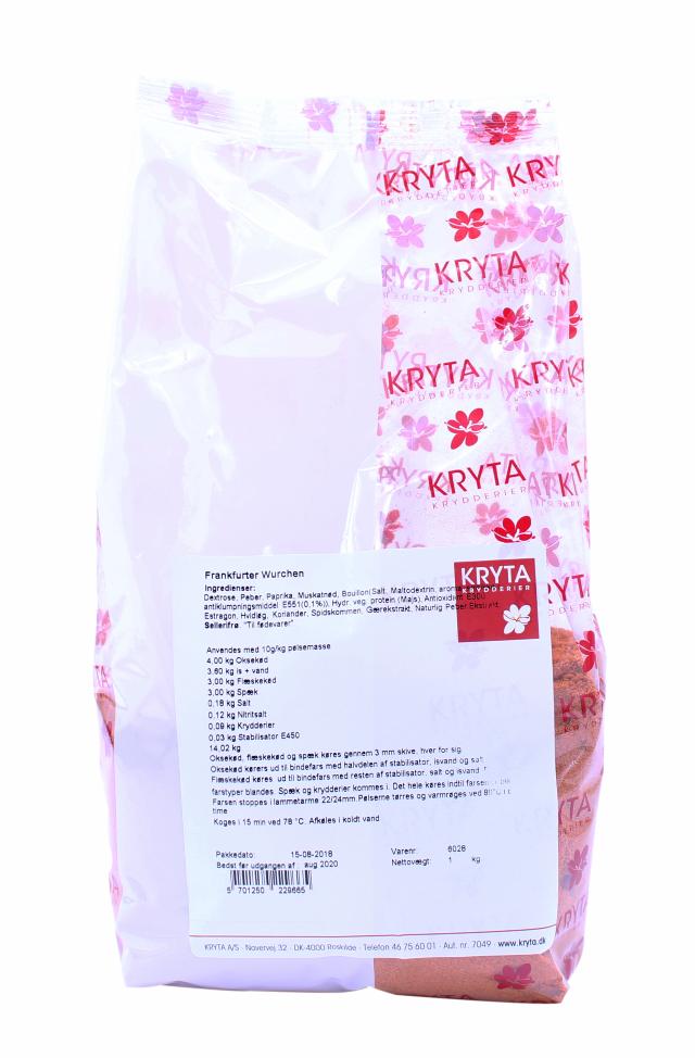 Krydderiblanding til alle slags grillpølser, herunder frankfurtere. Anvendelse: 10 g pr kg pølsemasse.