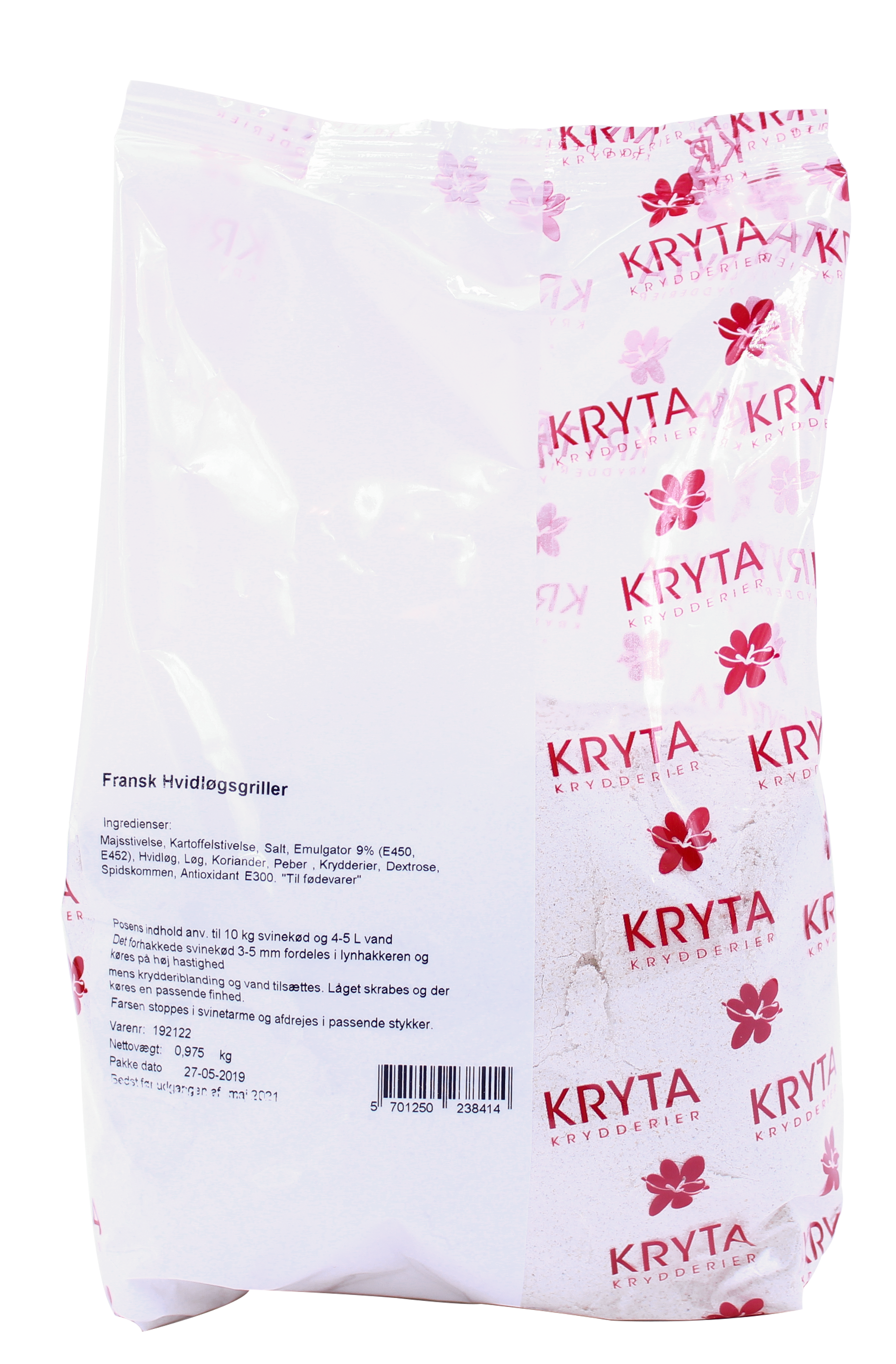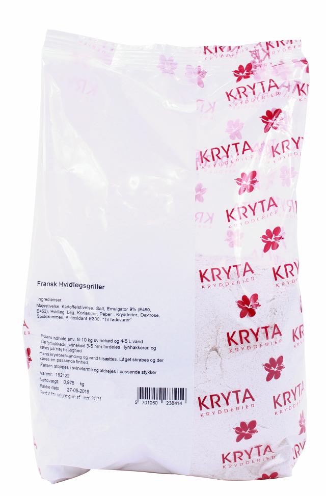 Færdigblanding til fremstilling af fransk hvidløgsgrillpølser. Posens indhold til 10 kg svinekød og 4-5 ltr. vand.