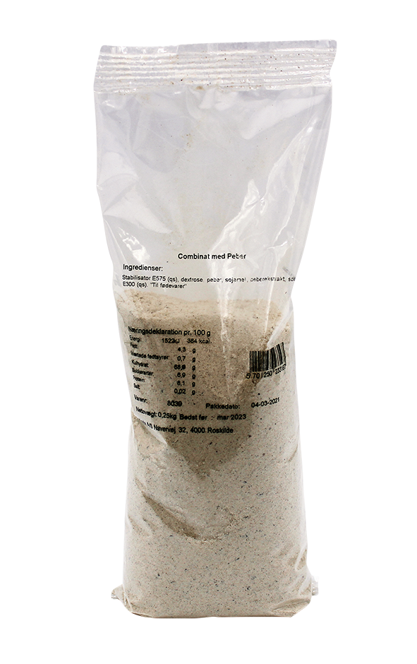 Færdigblanding til fremstilling af spegepølse med smag af peber- uden farve.